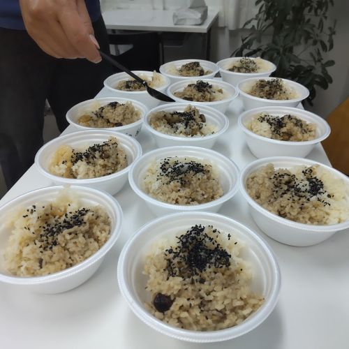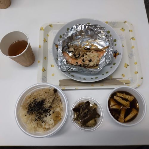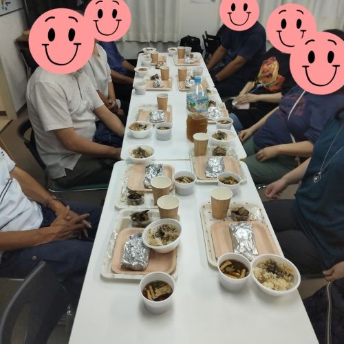 今回のメニューは、メンバーからのリクエストに応え、秋の味覚を存分に楽しめるラインナップとなりました。メインは2種類の栗ごはん、そして具だくさん味噌汁、鮭のホイル焼き、無限なす。デザートには梨のヨーグルト和えをいただきました。特にこだわったのは、具だくさん味噌汁です。これは、「つむぎの手作り味噌」を使っており、格別のおいしさでした。準備から盛り付けまで、メンバー同士が協力し合い、終始和やかな雰囲気の中、楽しいひとときを過ごすことができました。