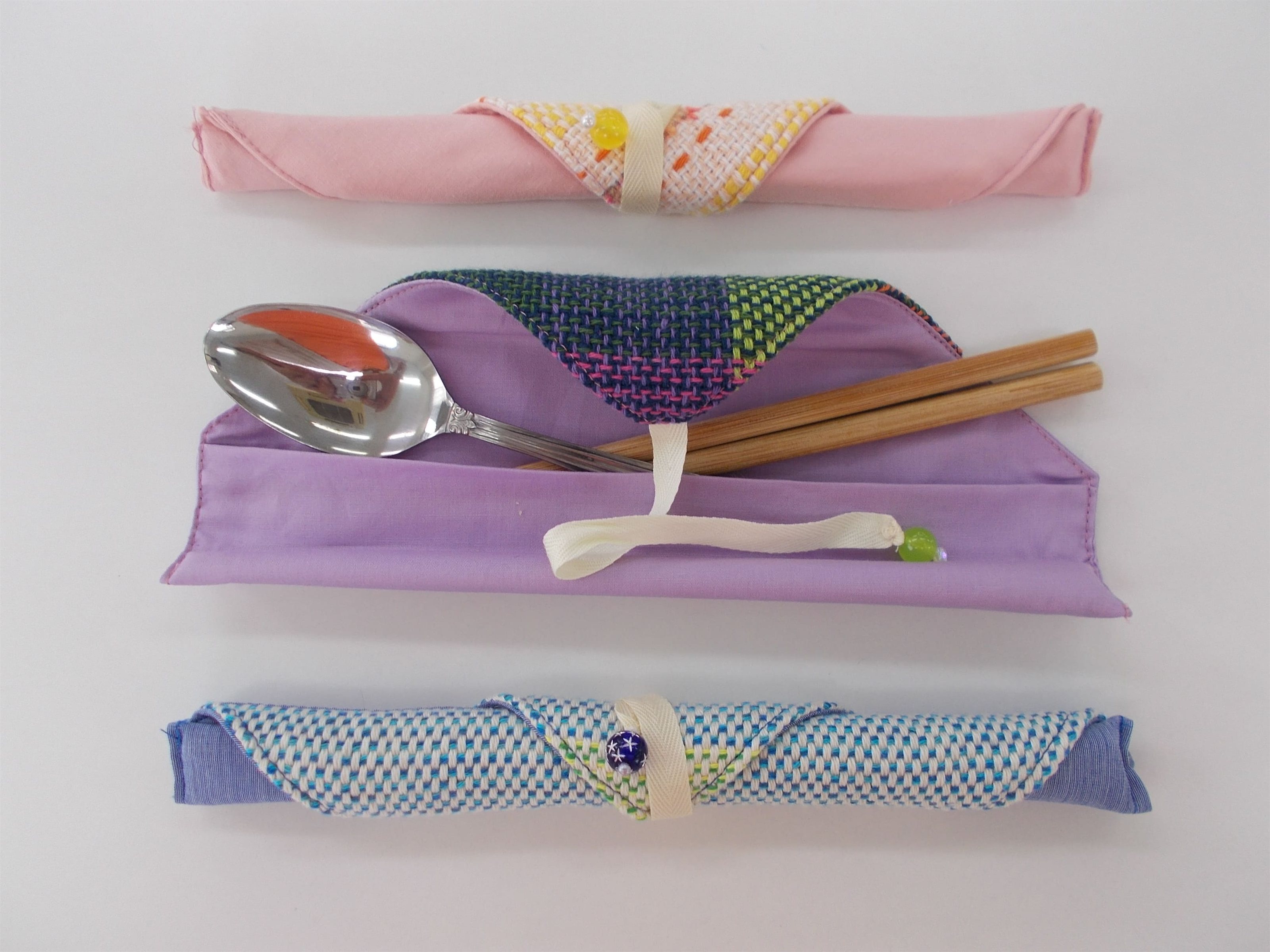 蒸し暑い季節となりましたが、つむぎでは気候に負けず、創作活動の主軸である手織りを使った作品が次々と出来あがっています。